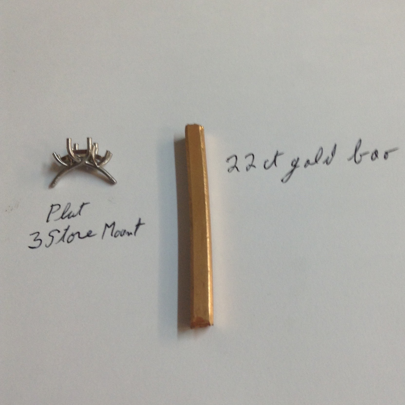 - The platinum mount is now soldered on to the 22ct gold ring shank. Filed emeried and polished for the final stage.