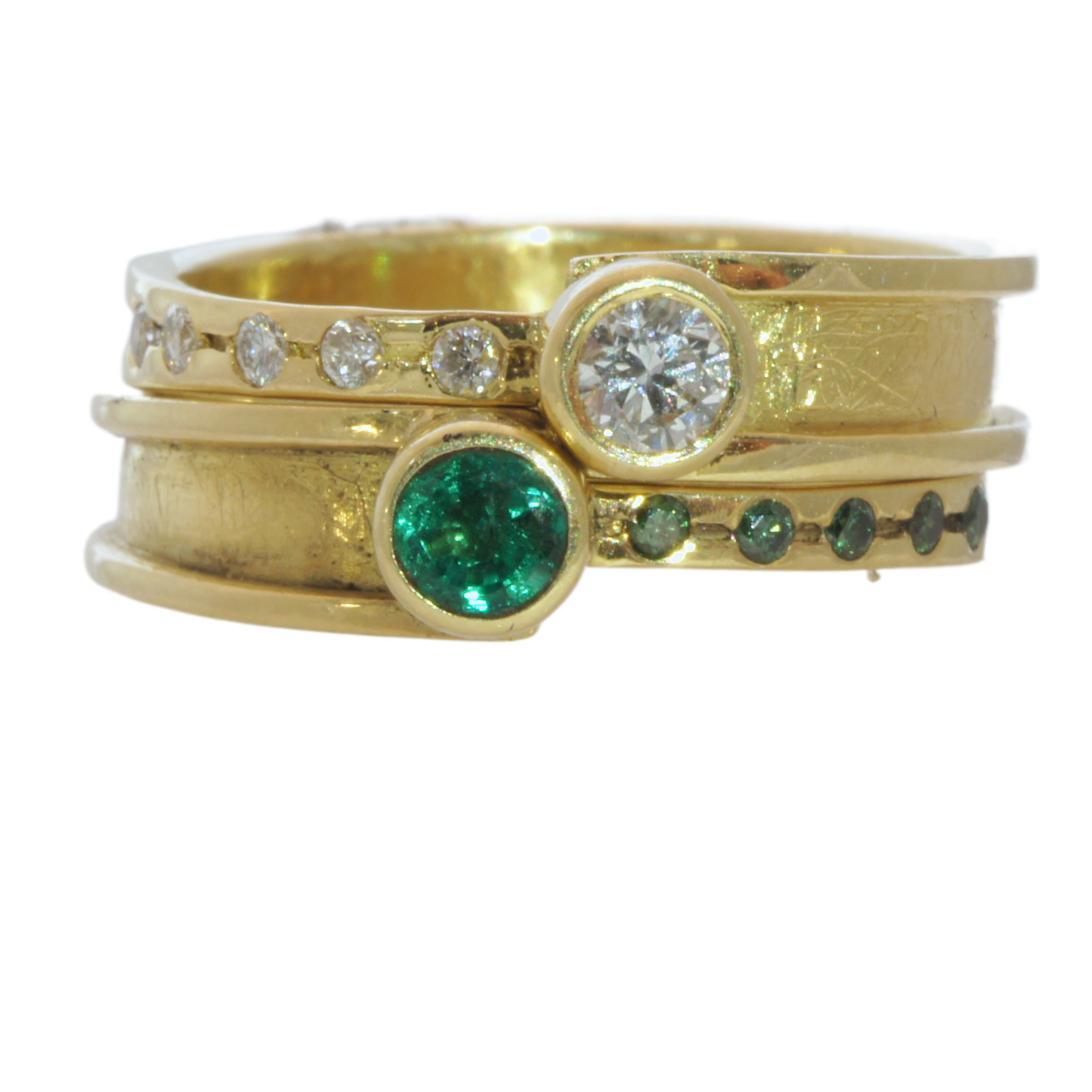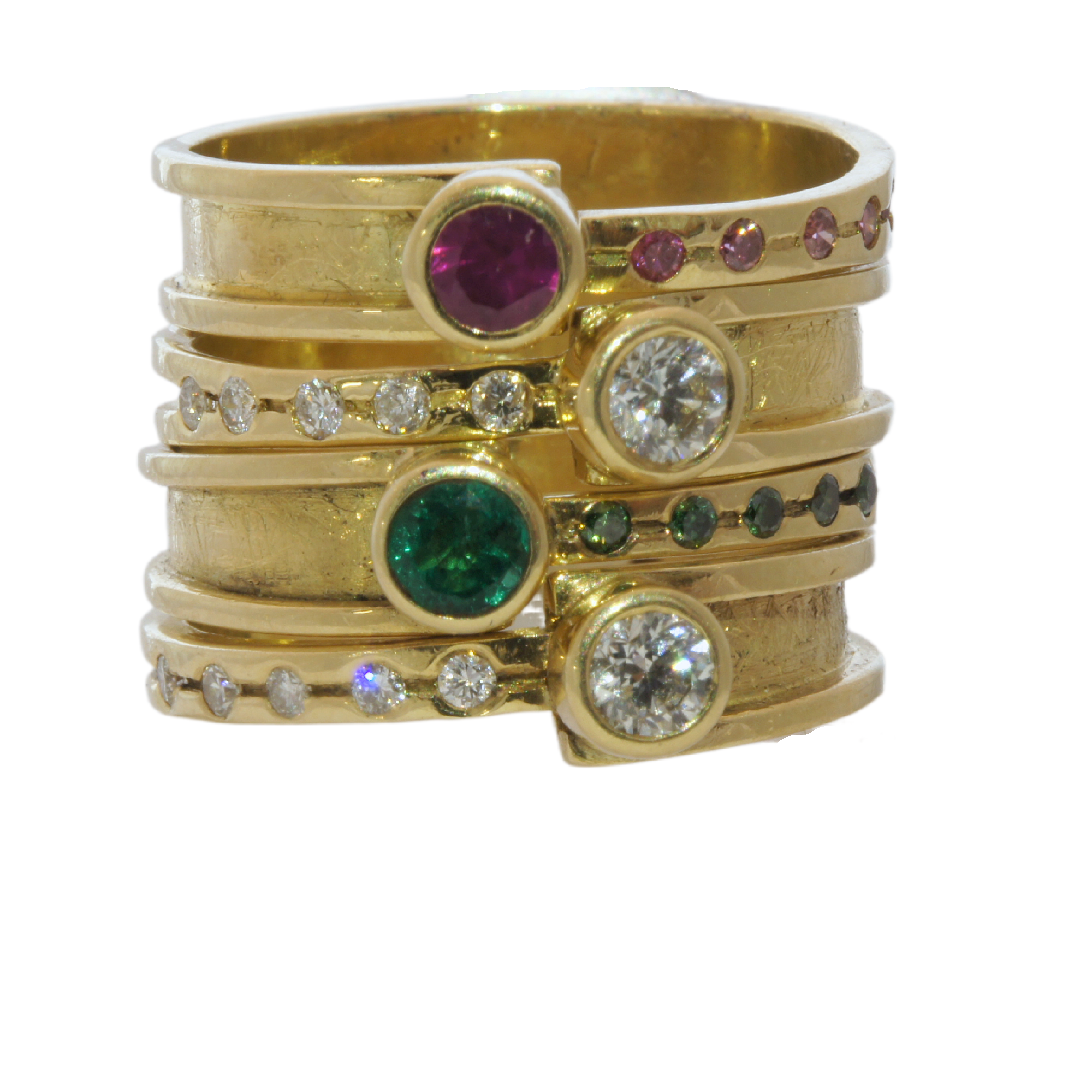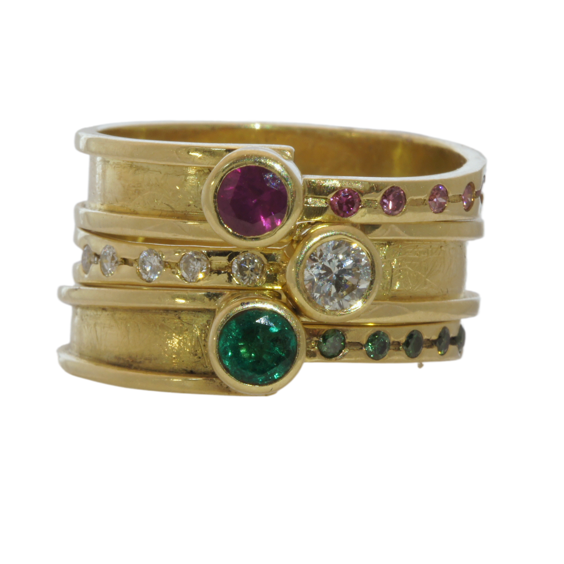 An 18ct yellow gold ruby and pink diamond ring.It is part of the Halley collection and can be stacked see below.