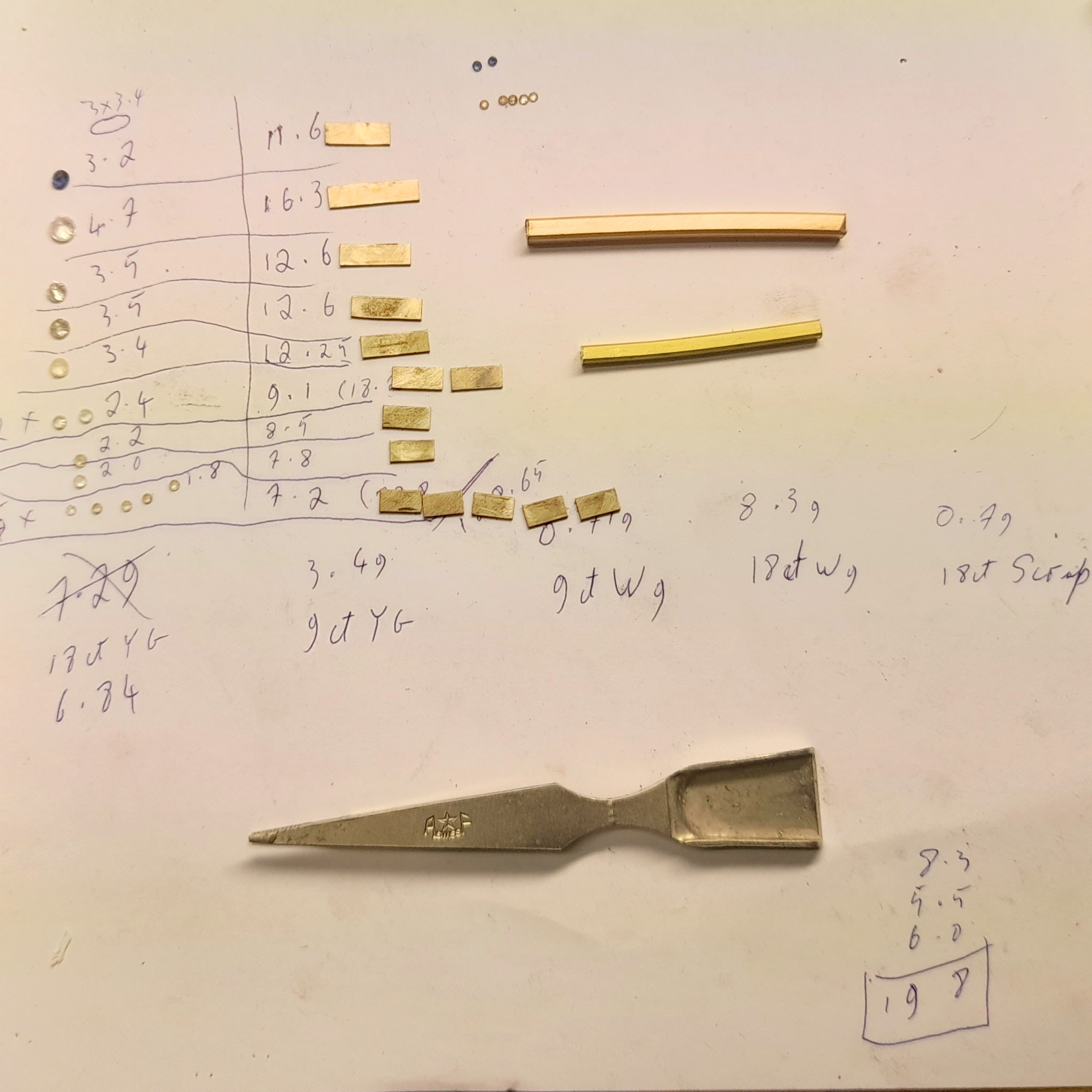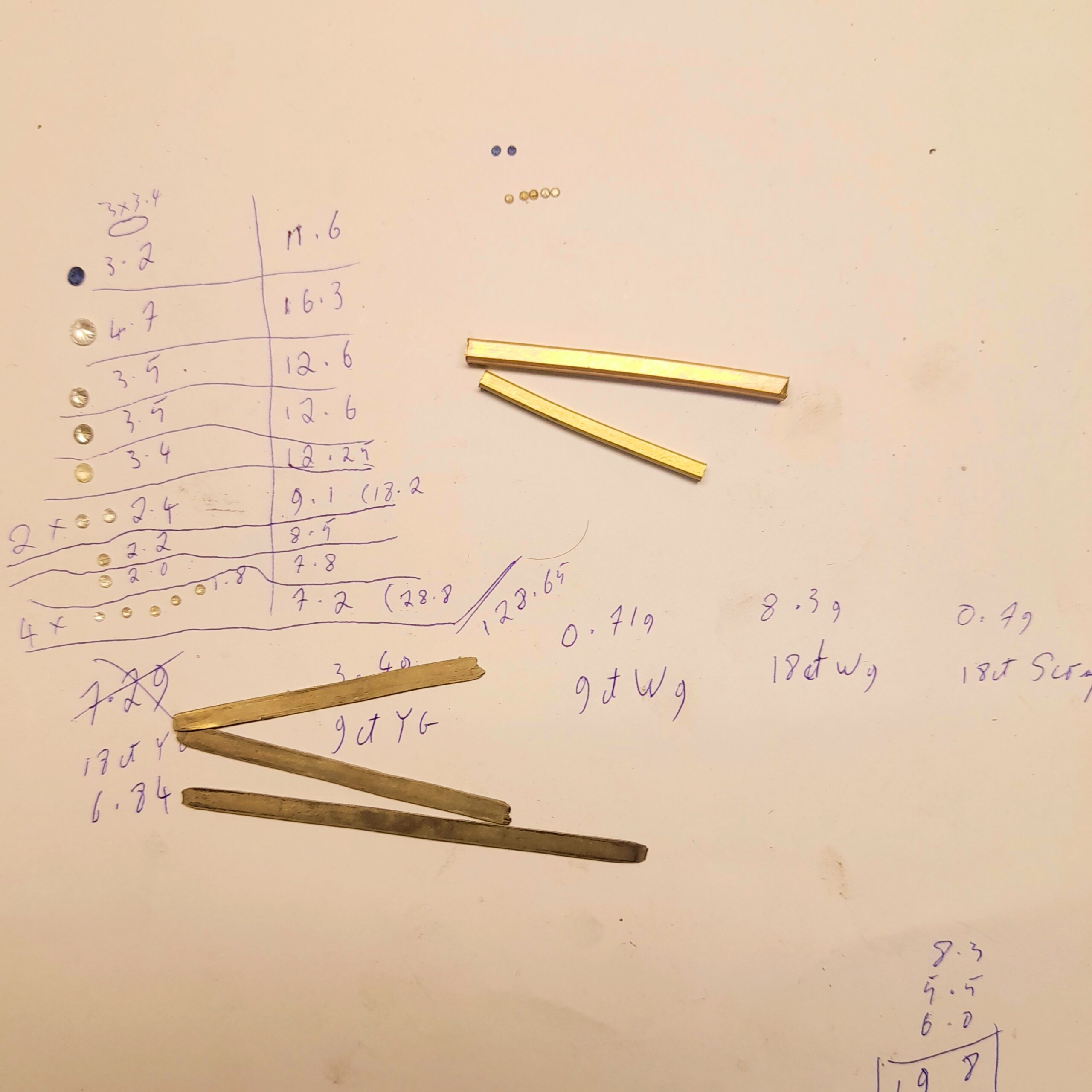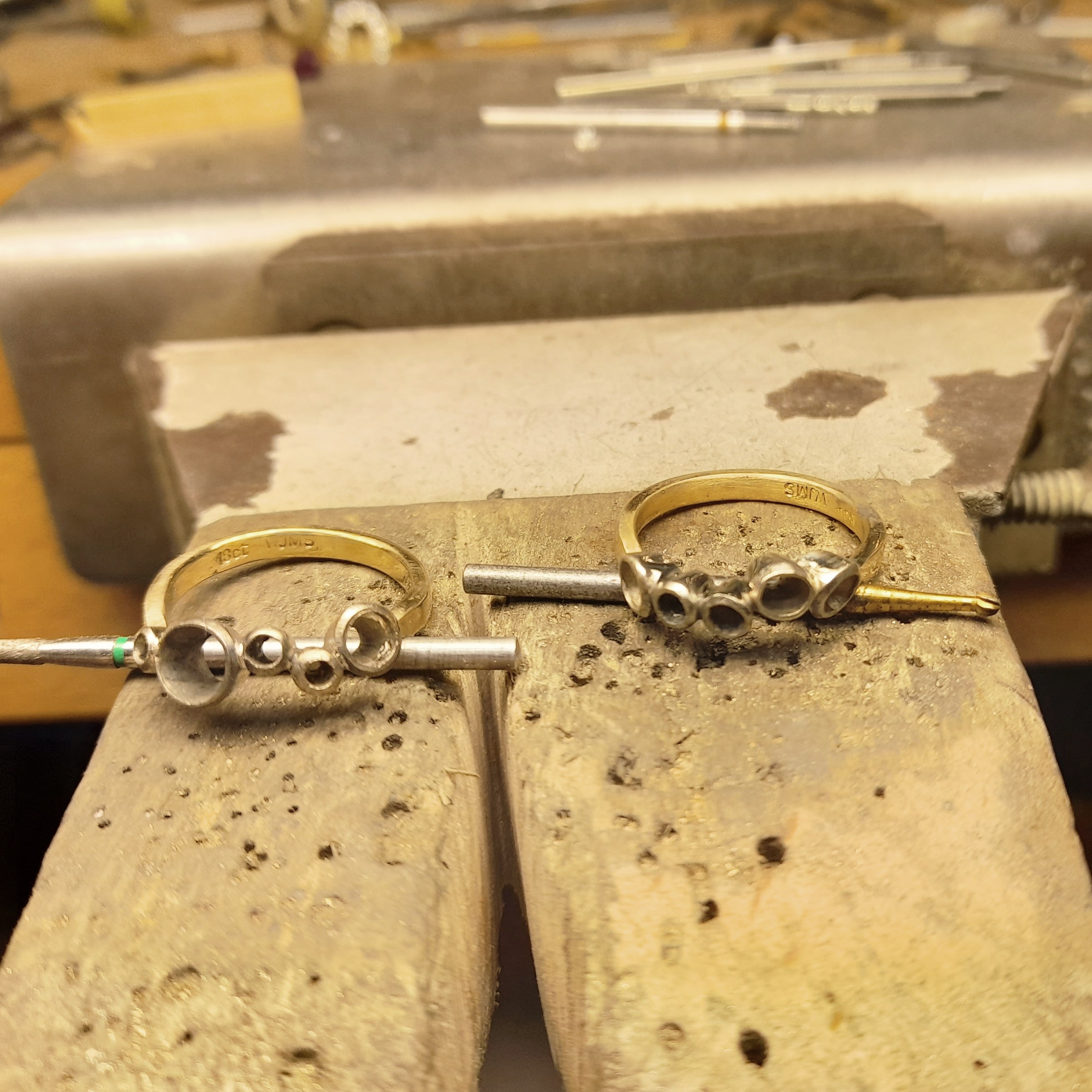The ring components like settings mounts and ring shanks are made and soldered together.