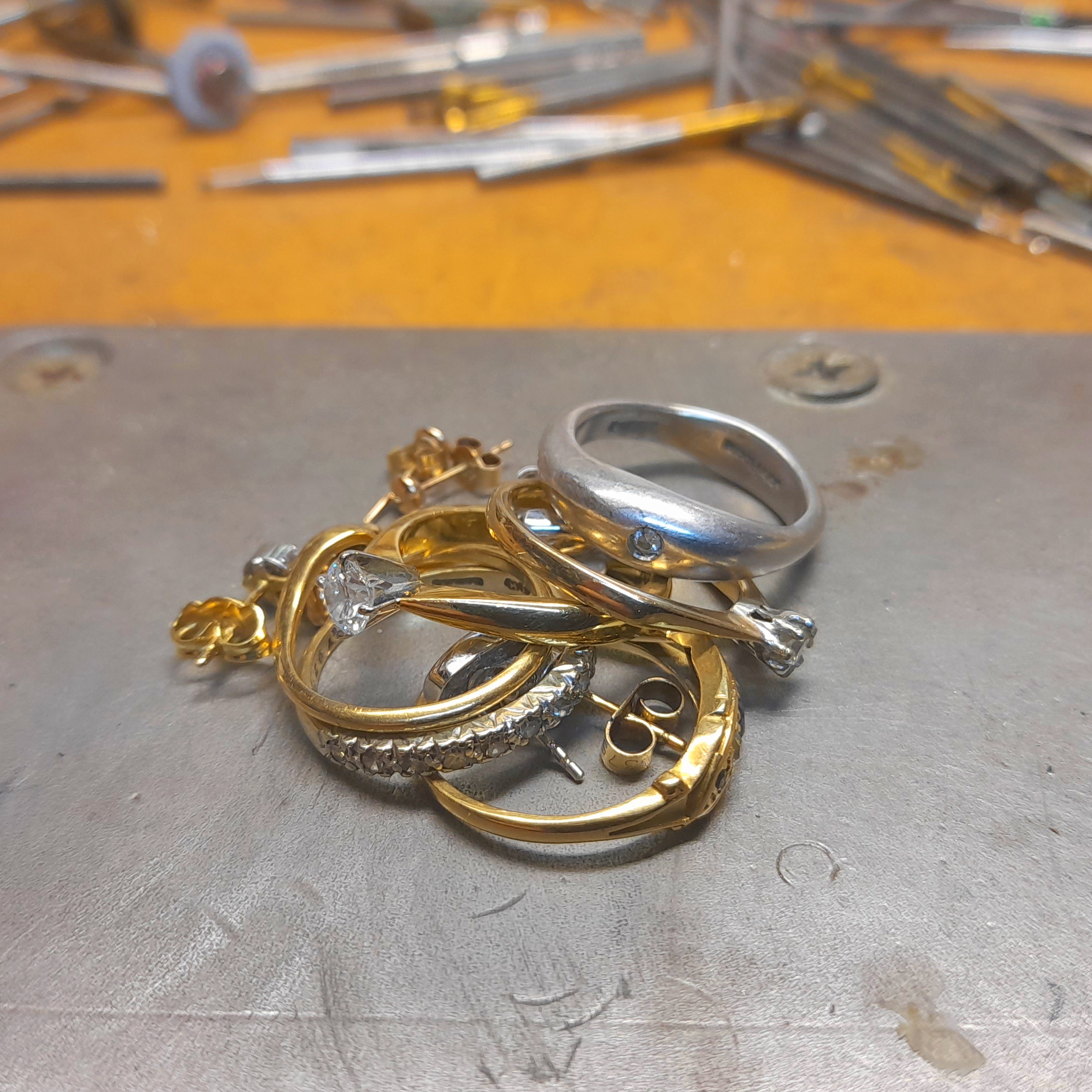 Customer brought in damaged 18ct and 9ct rings for redesign.